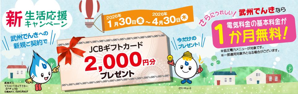 ②2026年1月30日(金)~2026年4月30日(木)までのお申込みで2,000円分のJCBギフトカードをプレゼント!