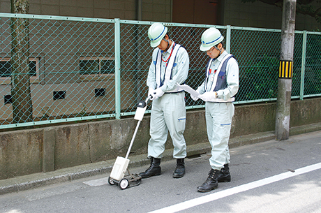 お客さまに安全にガスをお届けするため、道路に埋設されているガス管の安全確認を定期的におこなっております。